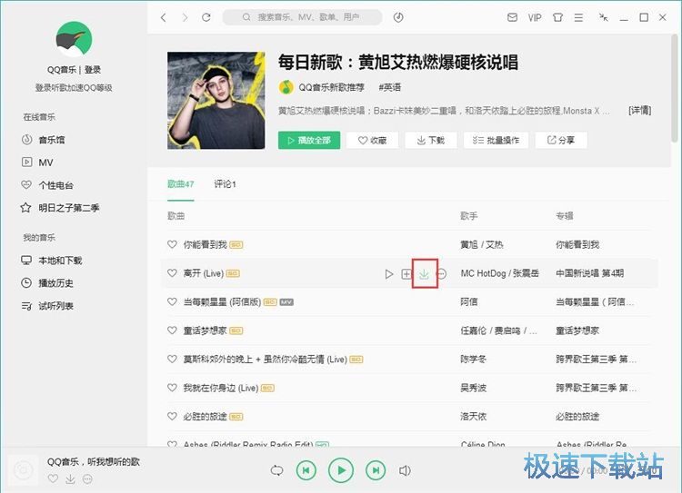 点击想要下载的在线音乐中的下载按钮,就可以开始使用QQ音乐对选中的音乐进行下载;