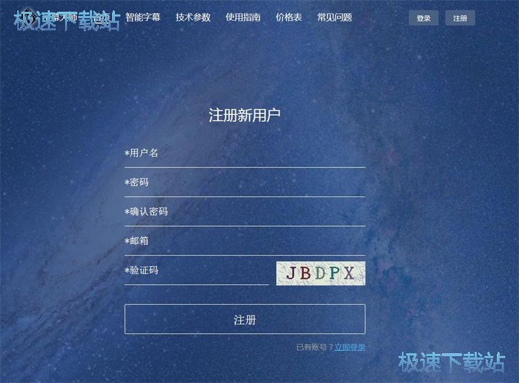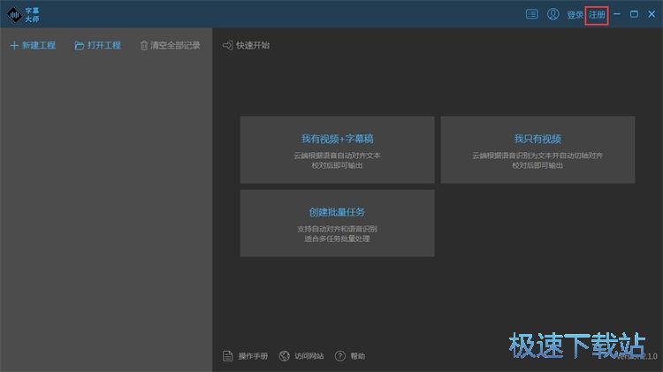那正好极速小编可以给大家演示一下如何注册字幕大师的账号。点击字幕大师界面右上角的[注册],打开注册页面;