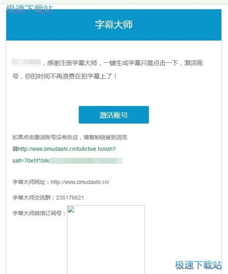 注册成功,离账号可以使用还有一步,我们需要去邮箱确认字幕大师账号激活邮件,将账号激活才可以使用字幕大师。