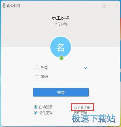 极速小编还没有鱼骨账号,这一次给大家演示一下怎么注册鱼骨账号吧。点击鱼骨登录界面的新企业注册,打开鱼骨账号注册界面;