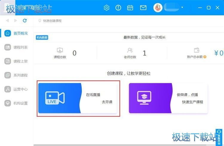成功登陆云开名师。我们可以开始在线直播上课了。点击[在线直播]就可以准备开始上课了!