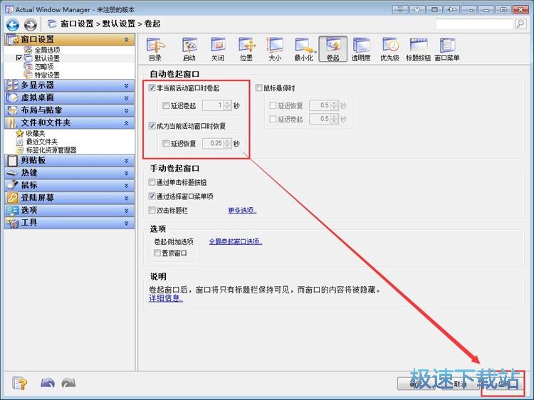 点击Actual Windows Manager主界面顶部的卷起,进入Actual Windows Manager窗口卷起设置界面;