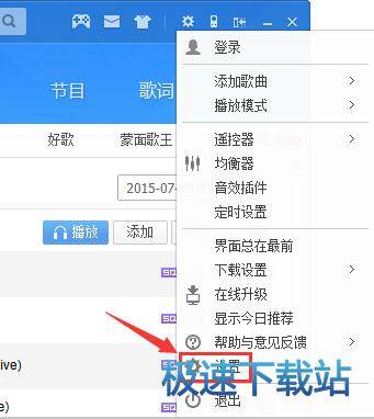 请在“主菜单”下拉列表下选择“设置”,将“常规设置”中的自动播放歌曲选项选定即可。