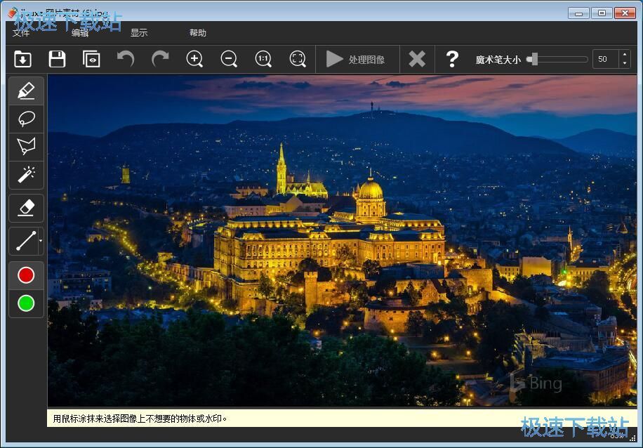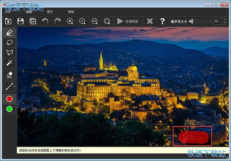 ͼƬÌí¼ÓÍê³É£¬Teorex InpaintµÄÖ÷½çÃæ×óϽÇÓÐÎÄ×ÖÌáʾ£¬ÓøÃÊó±êͿĨÀ´Ñ¡ÔñͼÏñÉϲ»ÏëÒªµÄÎïÌå»òÕßˮӡ£»