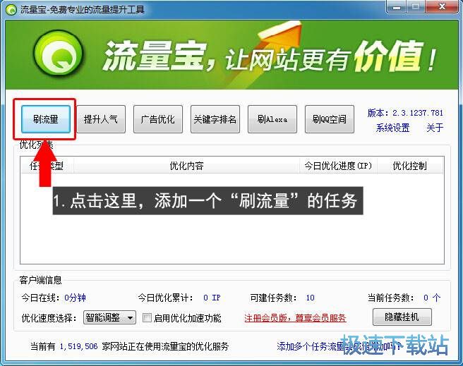 点添加创建成功一个刷流量任务,里若需更加高级的设置请看下面