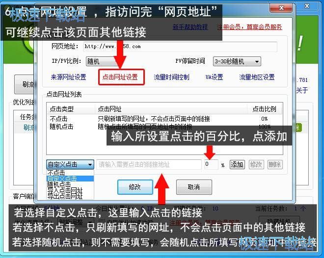 若选择随机点击,则不需要填写,会随机点击所填写网页地址中的链接