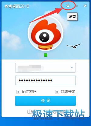 4、删除“微博桌面”后我们再打开微博桌面登录面板,点击右上方的齿轮图标,如下图所示: