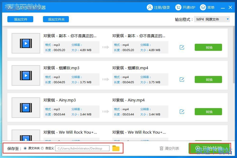 最后设置保存路径,可以选择原文件夹或者自定义文件夹,点击开始转换。