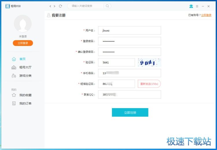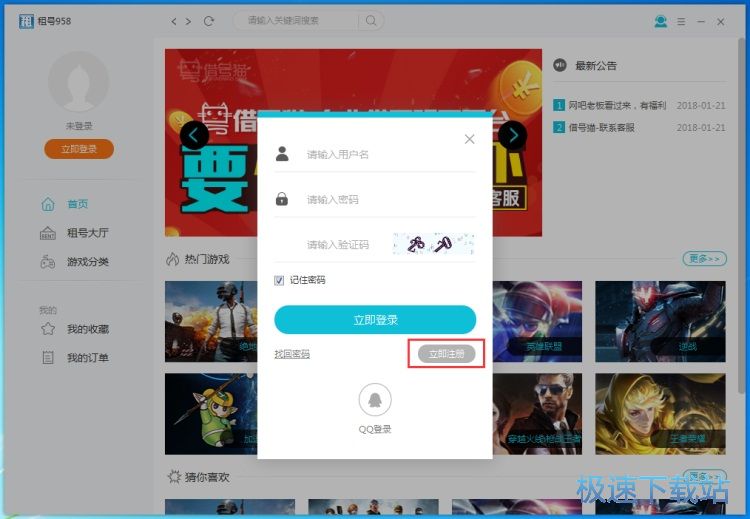 极速小编还没有借号猫账号,这一次就给大家演示一下怎么注册借号猫账号。点击借号猫登录界面上的立即注册,打开借号猫账号注册界面;