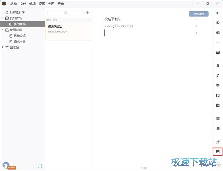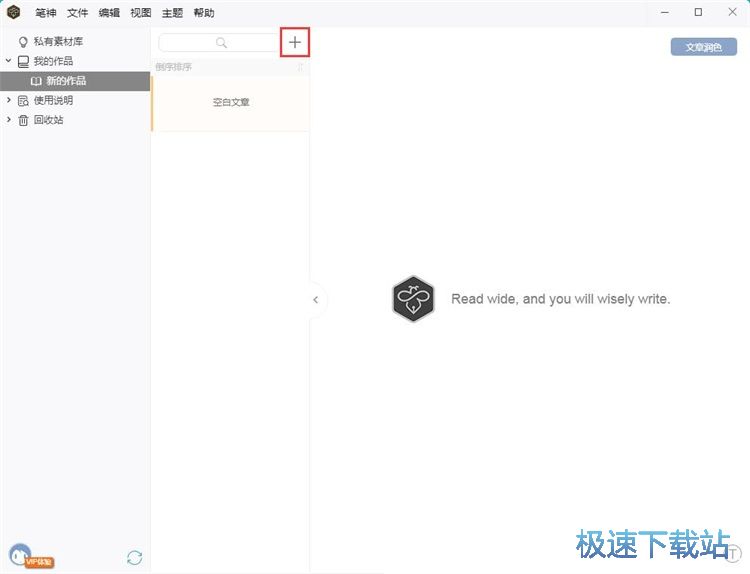 极速小编这一次就给大家演示一下怎么使用笔神向文本中插图片吧。首先我们要新建一个文章。点击笔神主界面中的添加按钮,新建文章;