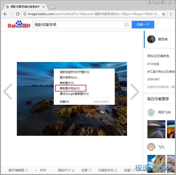 首先我们要获取图片链接,打开在线图片后右键点击图片。选择右键菜单中的复制图片地址,将在线图片的地址复制到电脑剪贴板中;