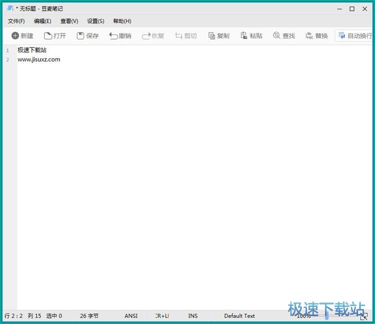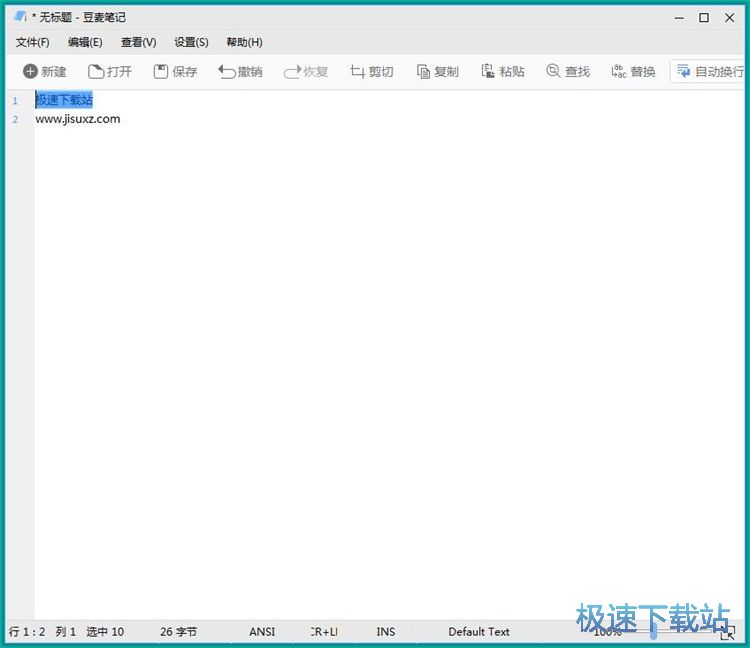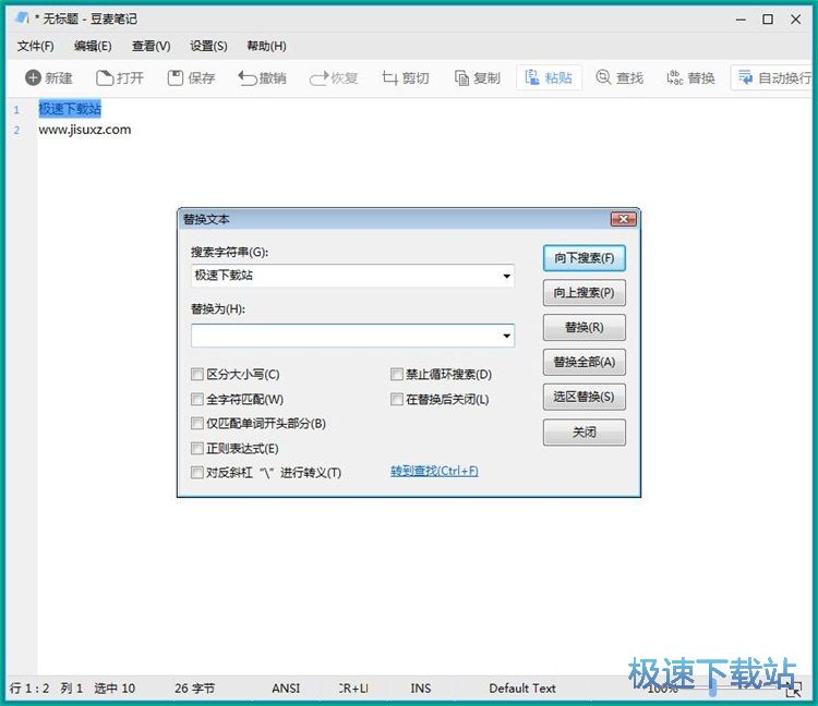 极速小编在豆麦笔记文本编辑框中输入了“极速下载站”和“www.jisuxz.com”。接下来极速小编想给大家演示一下怎么使用豆麦笔记对文本中的内容进行替换;