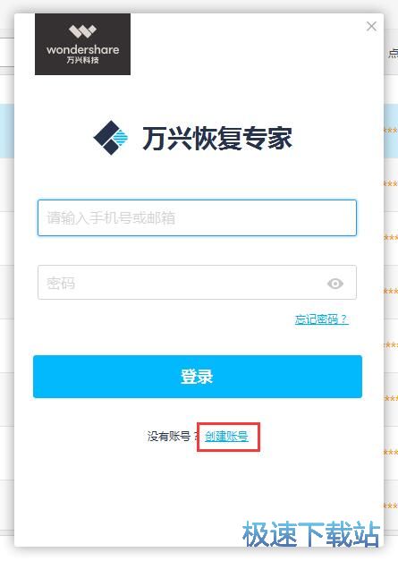 万兴苹果恢复专家需要使用账号密码登录才能使用。极速小编这一次就给大家演示一下怎么注册万兴苹果恢复专家账号吧。点击软件登录界面中的创建账号,打开DPS账号注册界面;