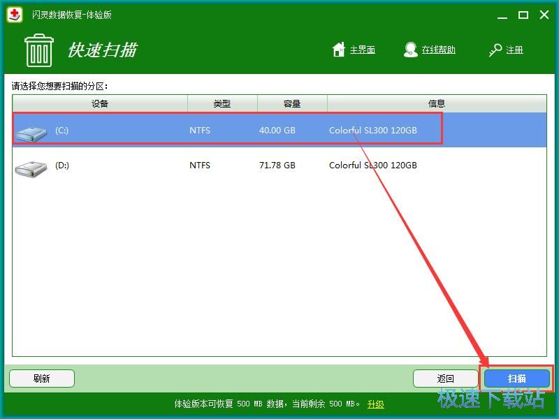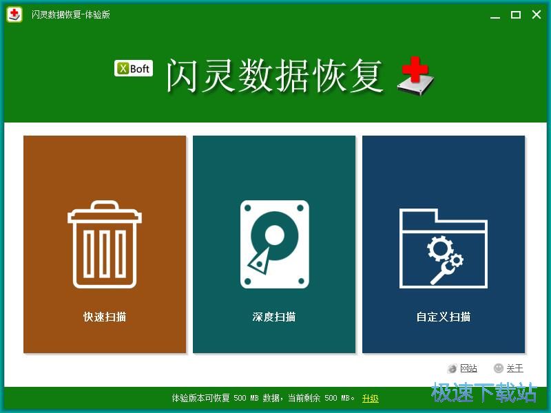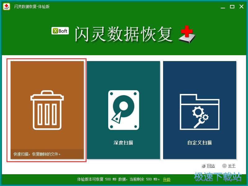 极速小编这一次就给大家演示一下怎么使用闪灵数据恢复扫描恢复电脑C盘中的被删压缩文件吧。使用闪灵数据恢复可以进行快速扫描、深度扫描、自定义扫描。极速小编选择了快速扫描;