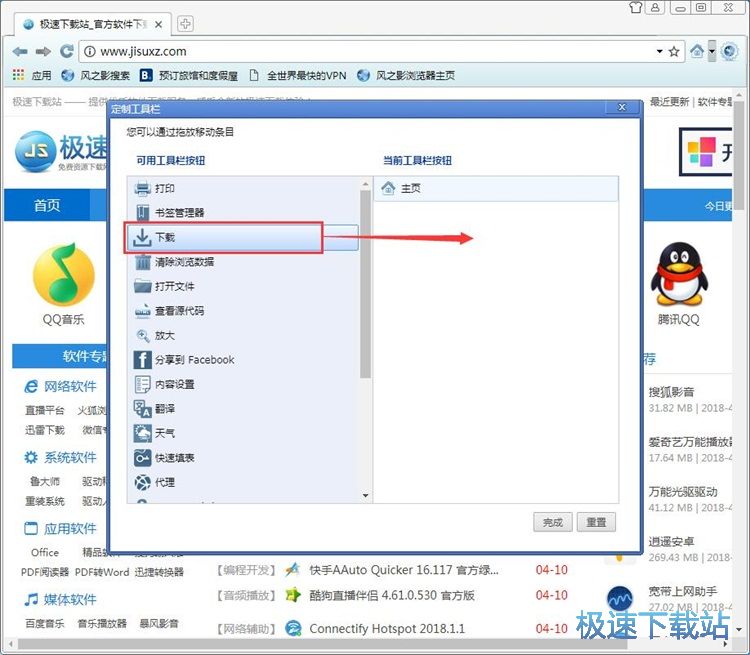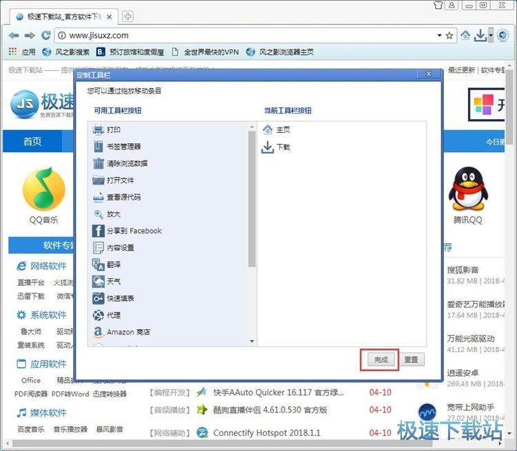 工具按钮添加完成,风之影浏览器地址栏右边的工具栏已经出现我们刚才添加的工具按钮。