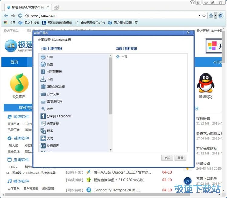 风之影浏览器的工具条可以完全定制。您可以增加更多的按钮以快速访问诸多强大的功能。