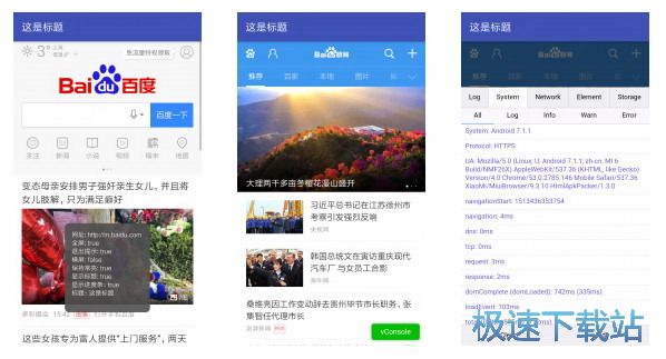 打开“调试信息”选项后,运行APP的过程中会展示一些调试信息,并且会在一些支持的网页中显示调试面板,可以打开查看网站的debug信息