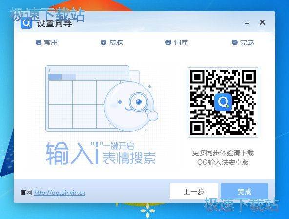 这时候我们已经完成了设置向导了,QQ拼音输入法还有贴心的使用小贴士,在输入过程中,输入“i”键可以开启表情搜索功能,轻松斗图。还有安卓版QQ输入法的下载二维码,各位安卓用户不要错过了;