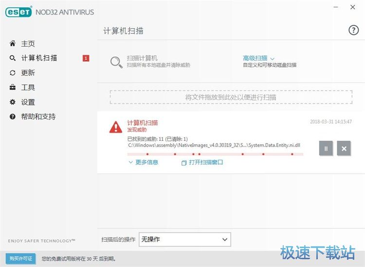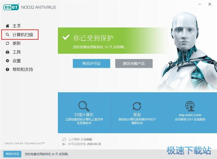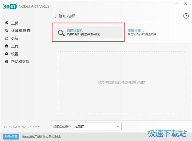 极速小编这一次就给大家演示一下怎么使用ESET NOD32 Antivirus进行计算机扫。点击ESET NOD32 Antivirus左边功能栏中的计算机扫描,进入计算机扫描功能页面;