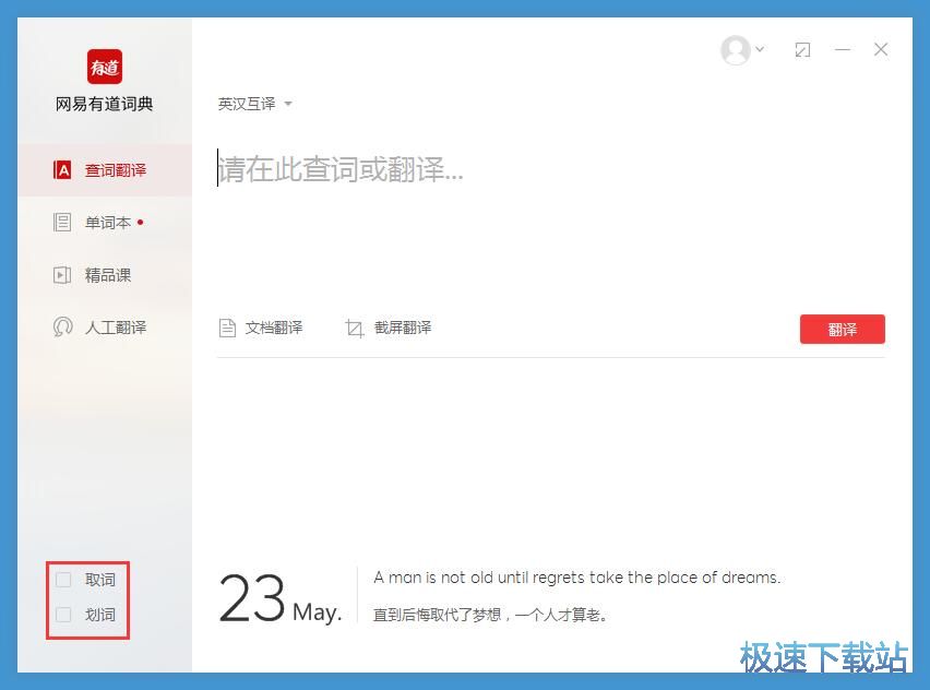 极速小编这一次就给大家演示一下怎么使用有道词典的取词和划词功能吧。点击勾选有道词典主界面左下角的取词和划词;