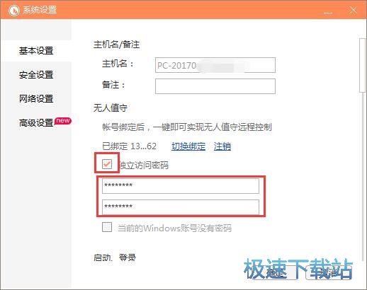 使用向日葵被控端进行远程控制,最好在电脑上设置独立的访问密码。在设置界面中的基本设置中,勾选[独立访问密码],在下方输入框中输入密码和确认密码。输入完成后点击[确定]就可以设置独立访问密码。这样其他电脑要对本机进行远程控制时都需要输入密码才能实现控制。