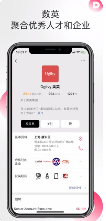 数英是书影网官方的广告营销软件,帮你解决大中华区专业招聘的数字媒体和社交媒体,提供各种广告营销案例,让你高质量简历广告营销策划,提升您的产品知名度,表彰优秀人才和企业,首个数字营销机构测评工具指数,知名企业招聘,作品集在全球广告奖图书馆获奖!