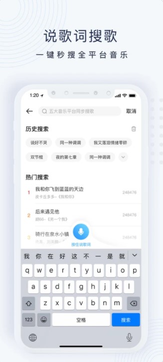 3.【音乐收听】识别结果可以直接收听,也可以跳转到喜欢的音乐播放器收听完整歌曲,搜歌必备神器