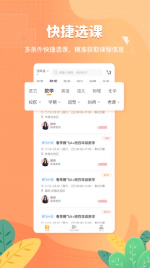 1、 快捷选课,多条件快捷选课,精准获取课程信息;