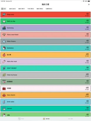 1.可以为每个习惯设置在一周内的哪几天重复,哪个时间段执行;