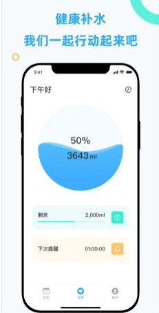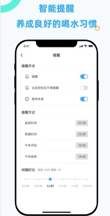 1、不同维度的、不同时段、个性化定制您的喝水习惯养成方式。合理的提醒您需要给身体补水,多喝水关注健康。