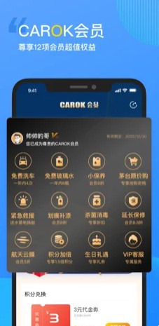 【CAROK会员】新增一年内4次免费洗车、6瓶玻璃水、特惠小保养等三项权益,会员现可享受12项超值服务