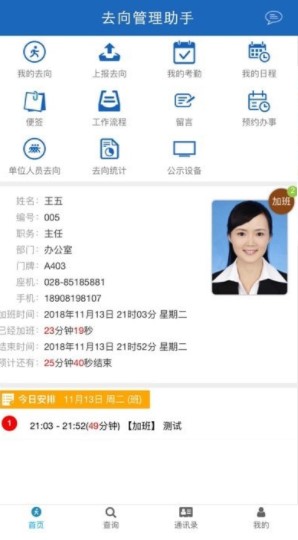 去向助手应用程序是专门针对管理员下落的智能APP应用程序。 用户可以通过前往助手应用程序随时随地进行管理,快速查询和管理工作人员的工作,非常方便。