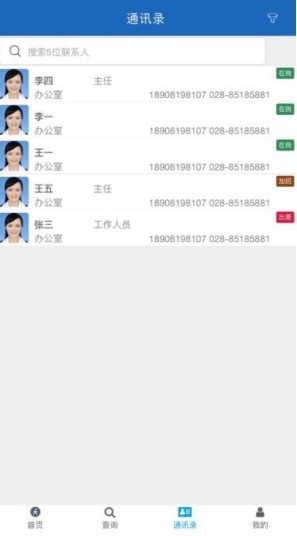 全部工作人员的去向状态可以在去向助手app里随时查看;