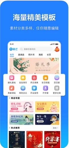云秀设计是一个易于使用的设计类办公室应用程序,您可以在其中制作海报和制作电子邀请函。 云秀设计操作简单,适合各种营销场景,可在多种场合使用。
