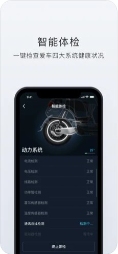 车况:电量和预估里程、安防定位、远程操控、智能体检、历史轨迹、骑行统计、附属智能设备;