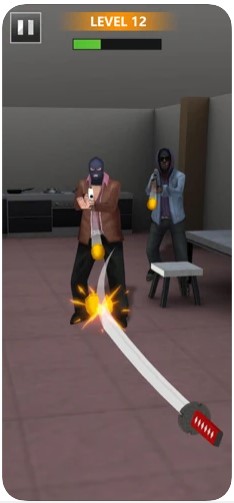 3、当子弹靠近你时,会触发子弹时间,快使用手中的刀砍断子弹。