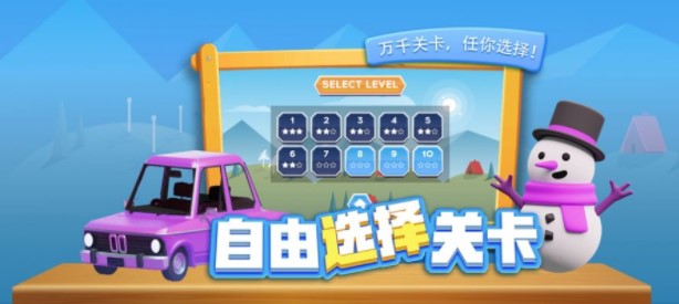 1、体验许多不同的模式,玩家需要控制不断前进的汽车从空中搭桥上安全的通过游戏;