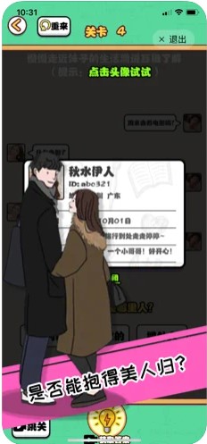 2.整个游戏的操作特别的容易,随时上线即可寻找一个你们喜欢的人;