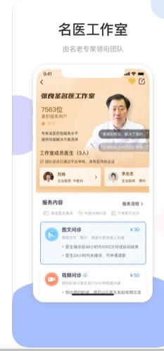 名医领衔,与团队成员为用户进行问诊诊断和复诊开方。