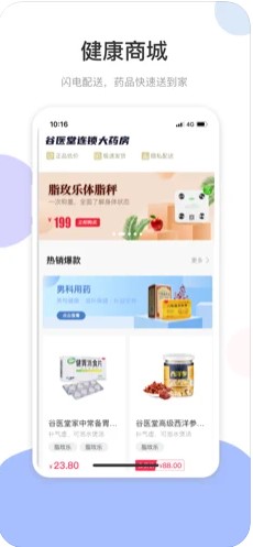 谷医堂健康是一个方便使用的在线医疗健康平台,谷医堂健康这款软件功能丰富实用,可以使用各种小工具。 另外,用户还可以在线咨询医生专家,诊断病情,提供健康指导,支持健康档案的建立,随时查看。 各种药品都很容易买到,非常方便。快来下载试试吧。
