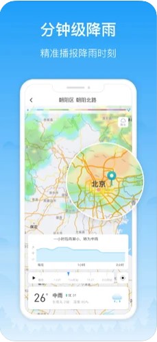 2、预报雨雪,这个应用可以在提前两个小时之内准确的播报雨雪开始与结束的时间;