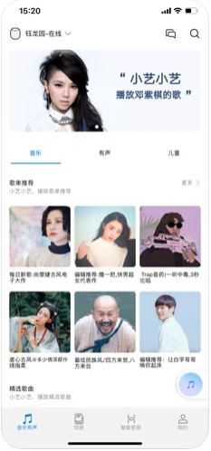2、音乐有声播放,在语音控制播放之余,软件为您推荐了歌单。