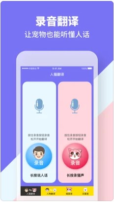 人猫狗交流器是人猫语狗语交流翻译器,真的会对你的声音进行语音分析,根据你的输入复述猫和狗的叫声。感兴趣的朋友可以前来本站下载试试。