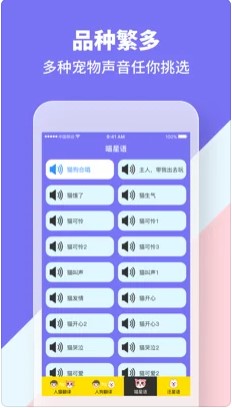 3.软件后台收集了数千种宠物的叫声,每一个叫声都表达了宠物的不同含义。