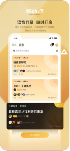 随时创建语音房间,与超核同好开启畅聊,更有游戏策划惊喜降临。