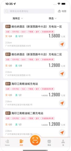 有两种不同模式的电站展示,同时支持在地图模式下查找电站,也能在列表中浏览电站;