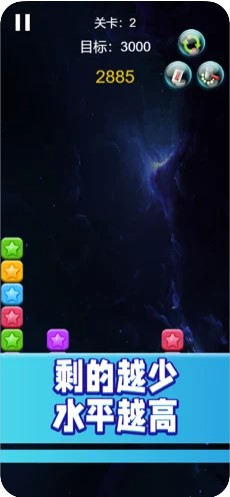 看我消星星是一个有趣的继续经典的消除星星的游戏,面对自由移动同样颜色的星星,玩家需要完成各关口的指定任务,累计分数解锁新道具,挑战更多难度大的关卡、上百种关卡挑战,不断刷新挑战记录。喜欢就下载玩玩吧。