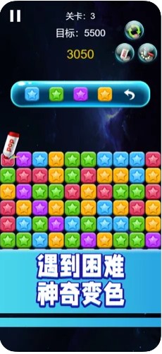 3、更有增加消除难度的完美消除玩法,萌星解谜,关卡内星星摆放成各种不同的可爱造型。