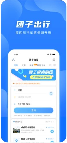 4、全新界面,全新汽车票查询和购买快捷操作体验,团子出行是官方授权销售渠道,各大车站实时联网,购票安全便捷;