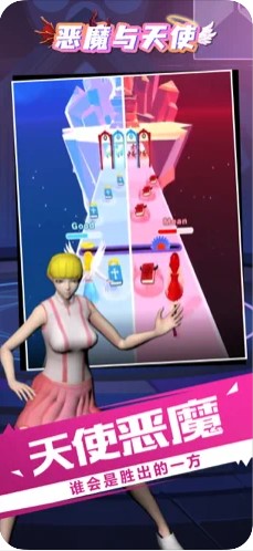 恶魔和天使是一款玩法简单,能让玩家感到诸多兴趣的闯关游戏。 玩家可以选择女主角成为恶魔女孩或天使女孩。 玩家通过滑动屏幕来控制女主角的前进,在途中收集能提高自己对应属性的道具,避开中途应对能力下降的各种障碍物,最终在战胜boss上完成闯关。